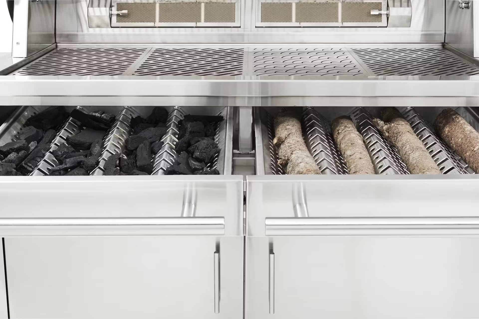 Setting up and managing your grill for this kind of cooking is extremely easy using the grilling drawer and the incredibly powerful Dragon Burners. There are limitless possibilities for setting up your grill for cooking with wood and charcoal, below are some tried-and-true techniques for users of all skill levels.