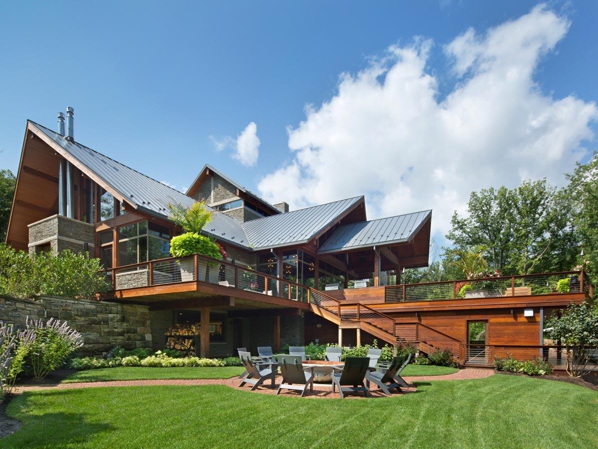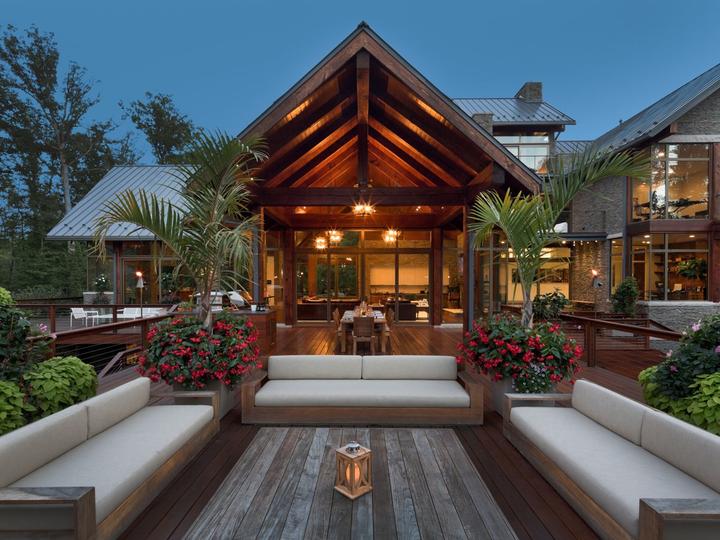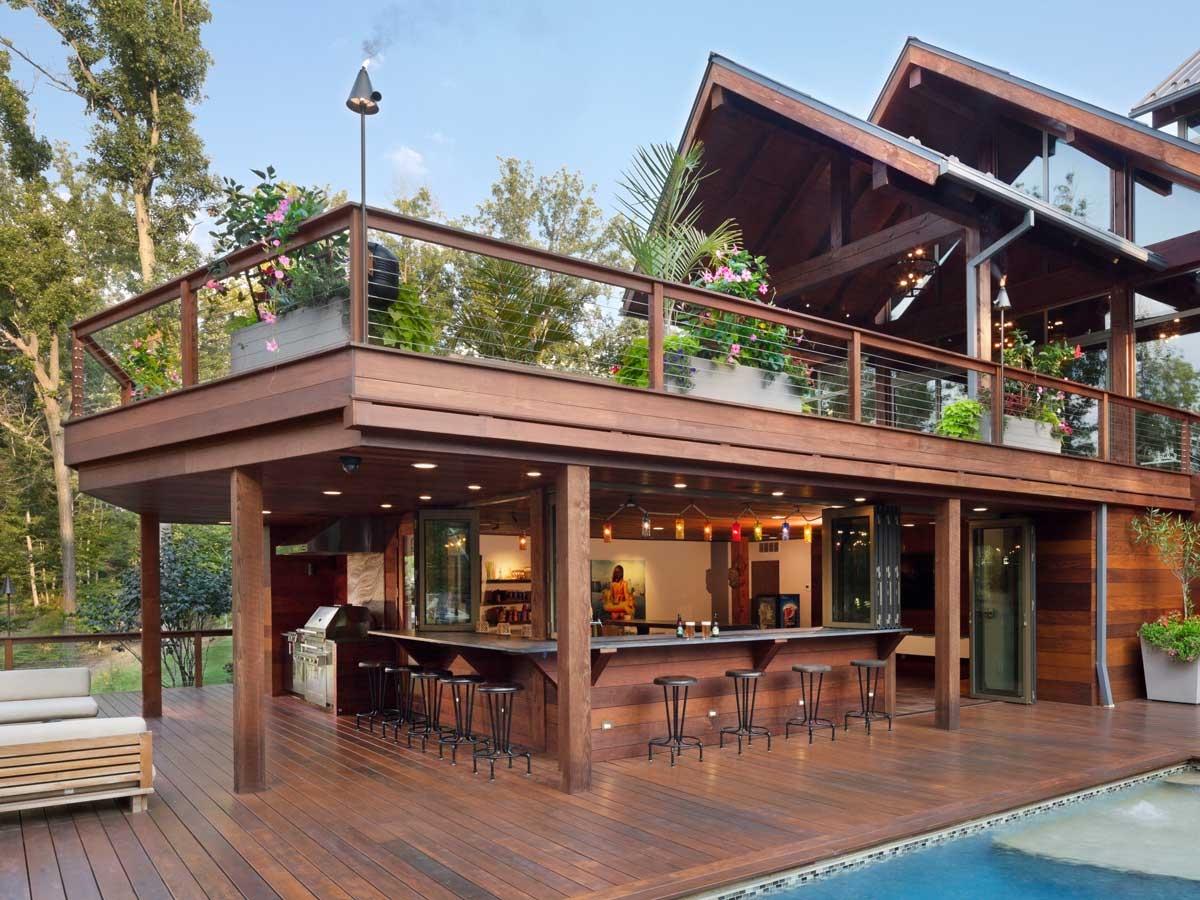 By Pat BeamThis spectacular two-story outdoor living space in Brecksville, OH features two separate Kalamazoo outdoor kitchens that complement the home’s truly original “modern cabin” style. Landscape architect Pat Beam of 9th Avenue Designs worked with Dimit Architects and the homeowner to create the stunning layout. The architects used ipe wood throughout to complement the unique mix of glass and stone featured in the home. Planned for more than seven years, this newly built home’s outdoor space was designed to provide the family with the ultimate in convenience and entertaining options.
