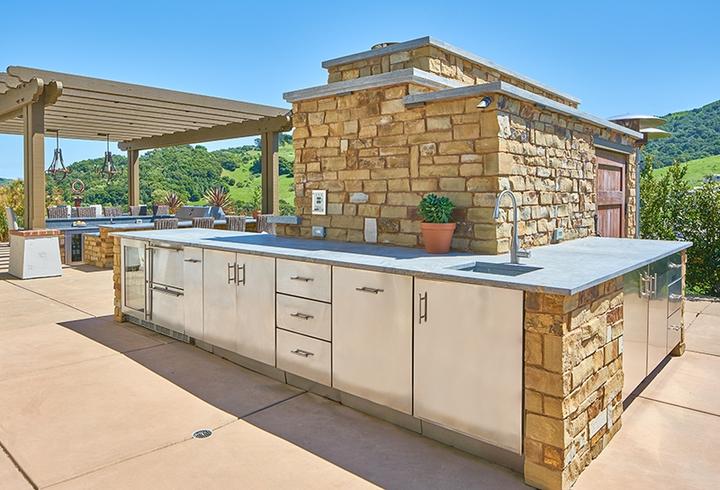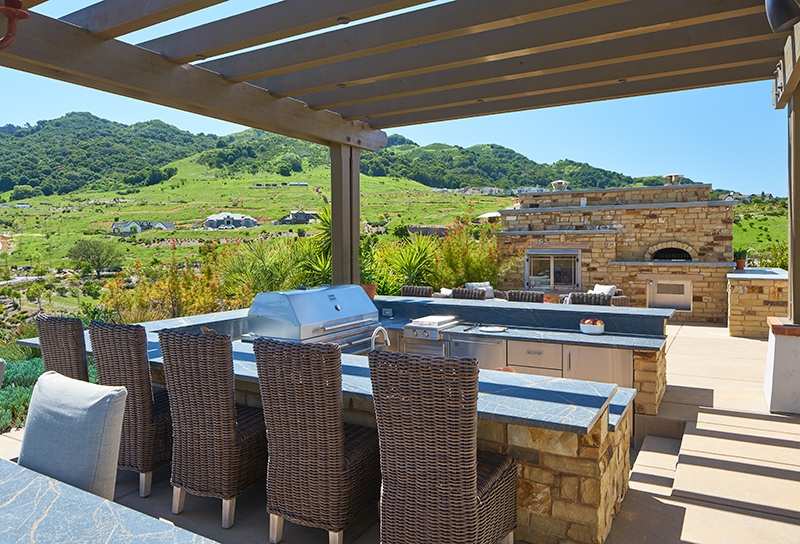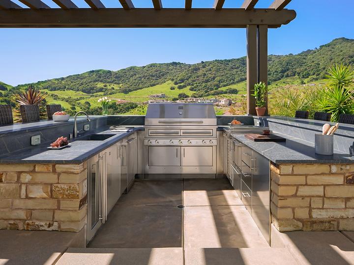 By Homestead Design CollectiveIn the idyllic town of Orinda, CA (ranked the second most friendly town in America by Forbes), this expansive outdoor living space overlooking a lush hillside offers its homeowners the perfect place to cook, relax, and entertain guests. Homeowners Stephanie Katleman and Paul Grinberg felt an outdoor kitchen was a natural fit to extend their outdoor lifestyle in California. “...We knew that an outdoor kitchen would be a focal point for entertaining, whether it was just a few people getting together or much larger parties,” said Paul. They dreamed of creating a space where they could share their passion for food and friends.