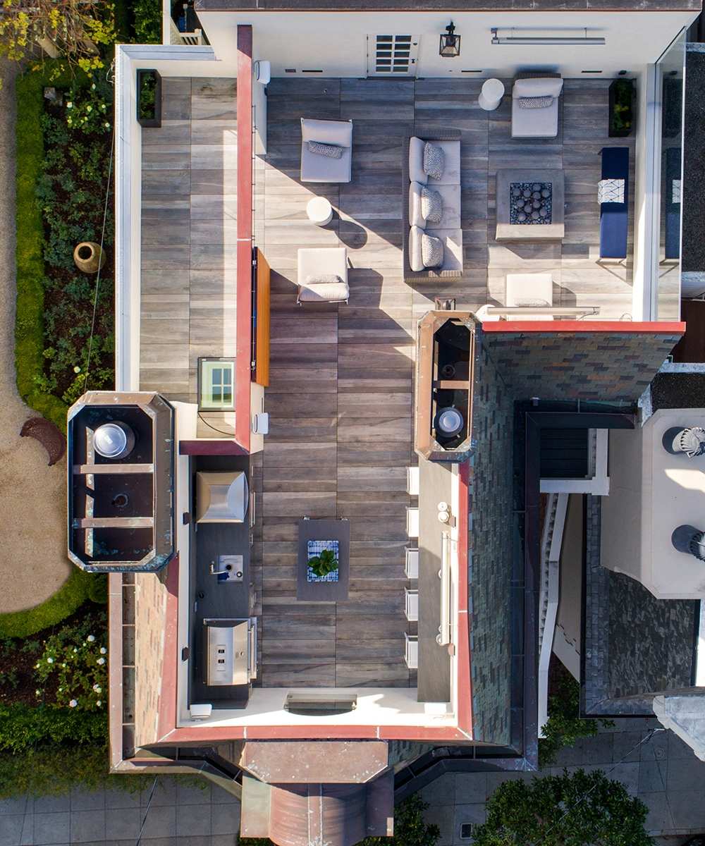 The homeowners can enjoy gathering and cooking with family and friends for years to come in this thoughtfully designed rooftop space.