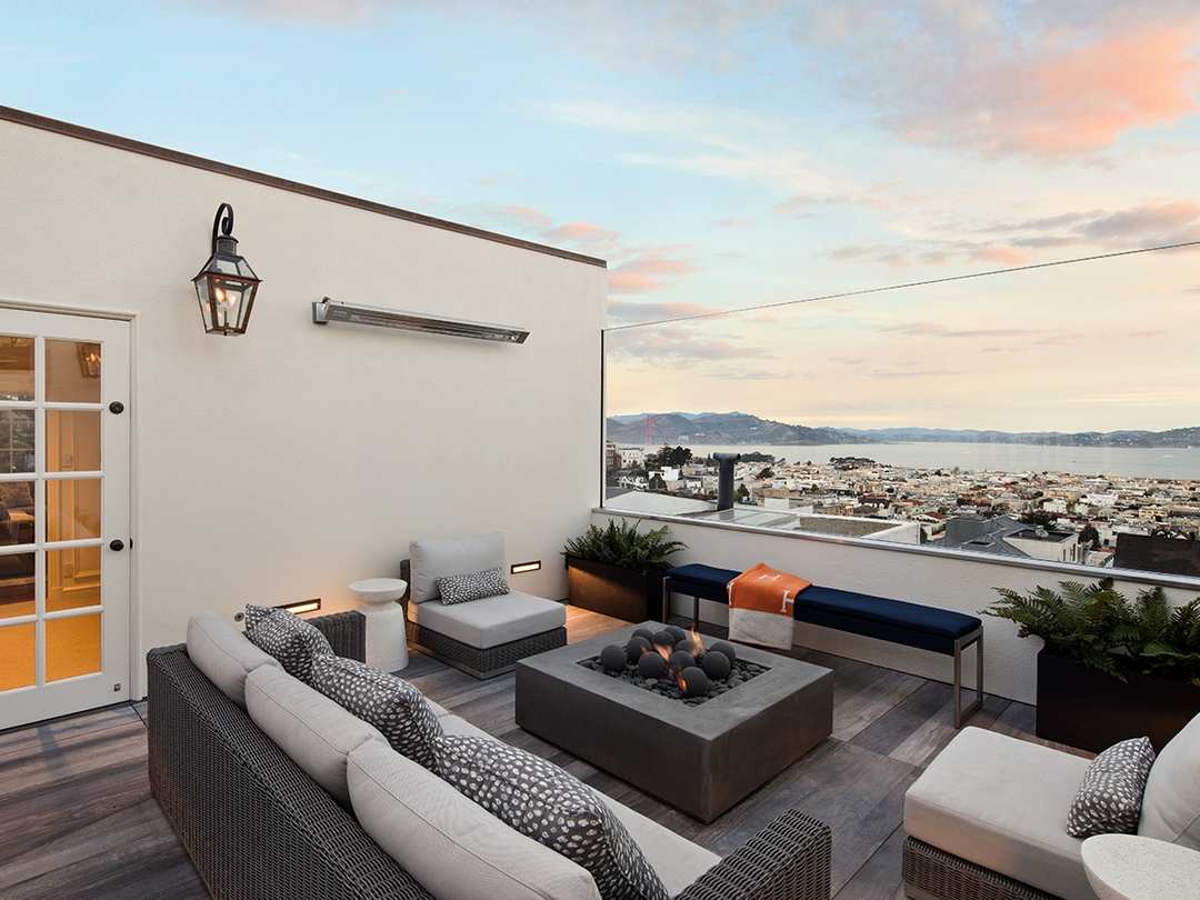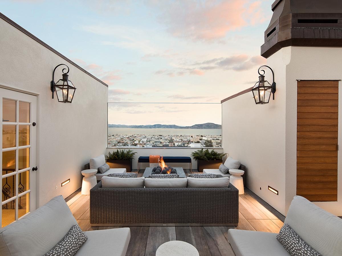 Serene views of the Bay Area and Golden Gate Bridge surround the outdoor kitchen and entertaining space, making it a premier spot to enjoy cooking and entertaining with friends and family. The rooftop entertaining space was designed to include ample seating and a fireplace, perfectly situated to enjoy the city and water views. The Kalamazoo outdoor kitchen offers the best in functionality and convenience for the chef and guests through thoughtful design and product solutions.