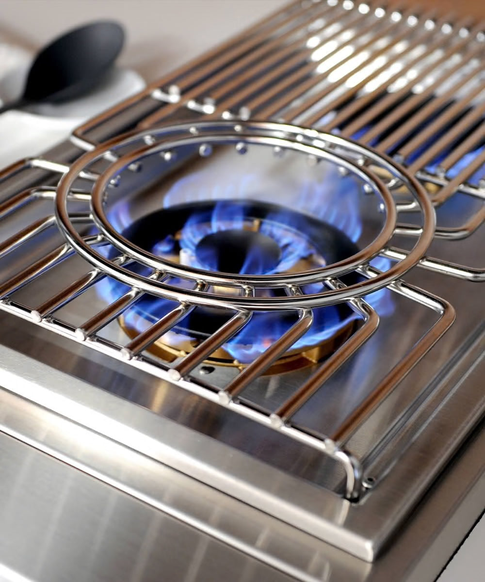 An outdoor kitchen just isn’t complete without a real rangetop burner — not just “a side burner.” Handle everything from a simmering bearnaise sauce to a crab boil, from a warm balsamic glaze to a big boiling pot of fresh corn on the cob.