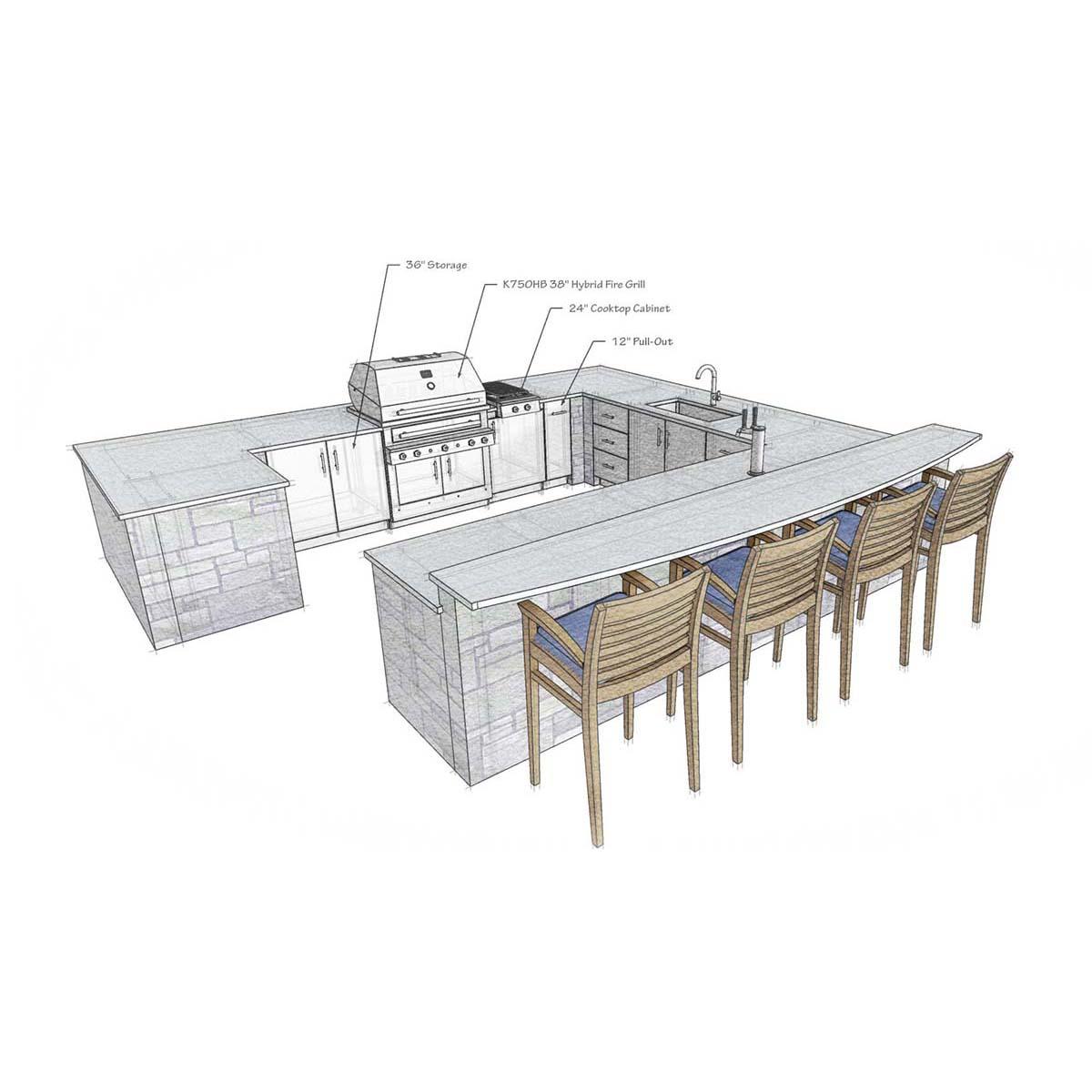 These sample layouts were developed by our outdoor kitchen design experts. It’s our experience that, for some people, a wide selection and seemingly infinite variety can be overwhelming—so, to jump-start your creativity, here are a few options that deliver a usable, enjoyable outdoor space.