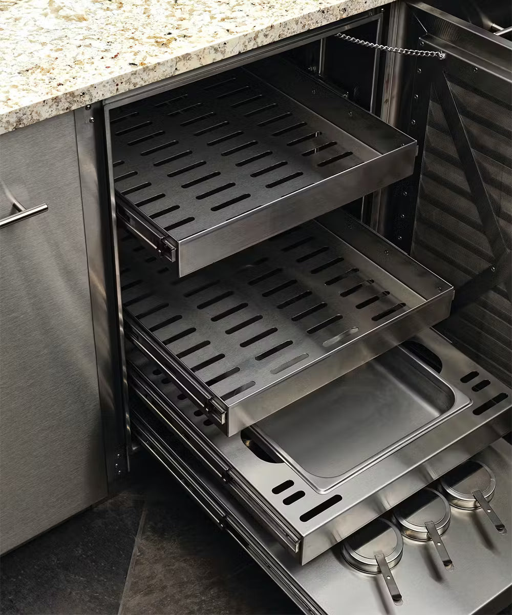 To keep food from drying out, we use the same technology as restaurants and caterers. It's a professional approach to home warming drawers: two heated water trays keep food moist, and reduce rebound time from temperature drops after you open the cabinet door.