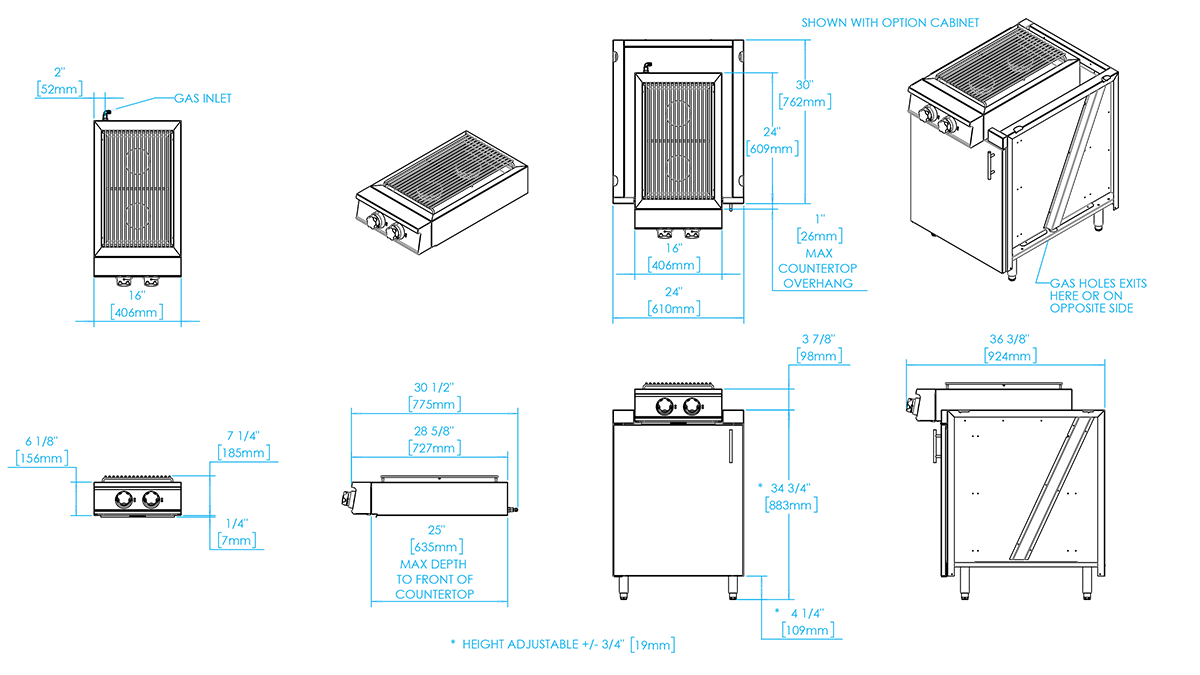 - Can be installed with masonry or Kalamazoo's range of 24-inch cooktop cabinets