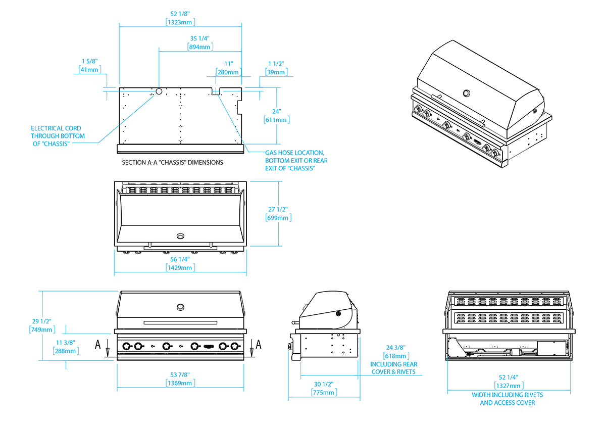• 48" x 22" (1,056 square inches) grilling surface